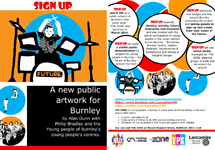 A new public artwork for Burnley and an experimental model for engaging large numbers of young people, working across Boroughs and creating an artwork that captures the imagination of the wider town. In August 2013, Burnley was named as Britain's most enterprising area and we took this as a starting point for SIGN UP. Alan Dunn devised the overall programme in which local artist Philip Bradley worked with six youth organisations across the town to consider what activities might take place in the newly designed Youth Zone and also the type of activities that may exist in ten years from now (mobile phones that teleport, x-ray eyes, shrinking machines etc). A useful reference was this article on well-paid jobs of the future. |