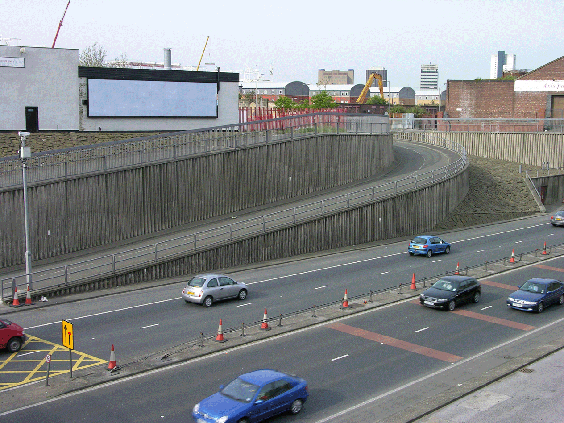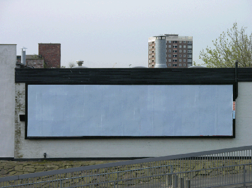 cantaudio Venue: The above site at Wellington Street has been hired by Alan Dunn for the 4 week period 7 November - 4 December 2005. Location: The billboard is best viewed when travelling to Liverpool from Wirral through the Kingsway Tunnel. It is estimated that just under 500,000 vehicles use the Kingsway Tunnel every fortnight. Project: Two newly commissioned artworks will each appear on the site for 2 weeks each. Content: A new collaborative work is being developed by Alan Dunn for the second two week period. The first two week slot is a possible presentation slot for the NO MUSIC DAY work. Process: Designs supplied to Alan D as original artwork or on CD, image saved at 300dpi, 'image size' to be 2x1ft (60x30cm). Can be full-colour or black & white. Each work to include a legible link to a project website page. These links need not be enormous as vehicles do pass at a closer viewing distance before they swing around from the tunnel. Supporting material for website welcome. Placement of this link to be agreed between all involved. Final billboard dimensions 40 x 10ft. AD to pay for all production (one copy of print) & installation of poster, provide documentation and pay fee of £300 upon receipt of signed invoice. | |