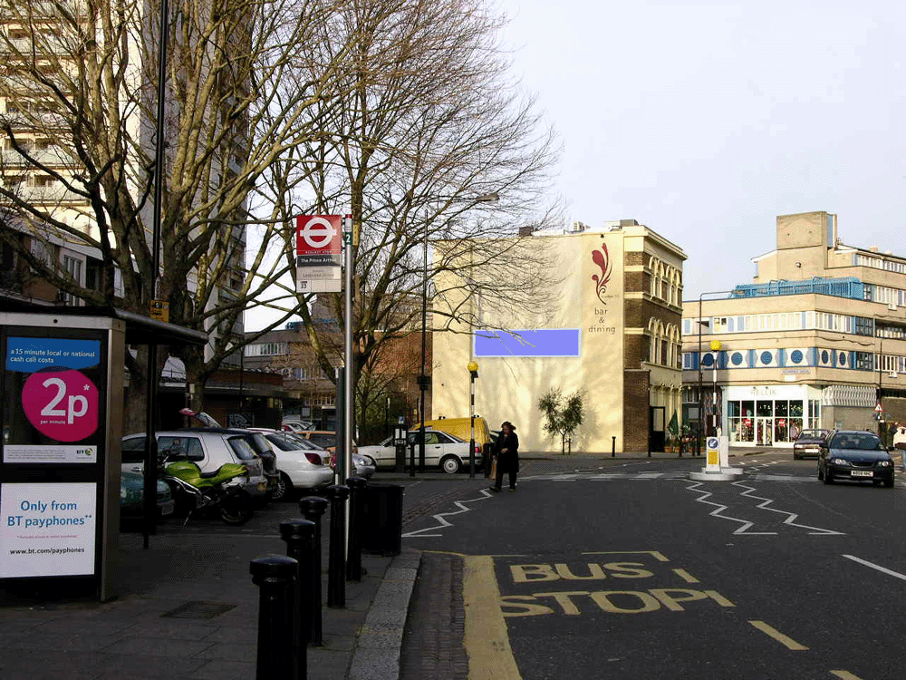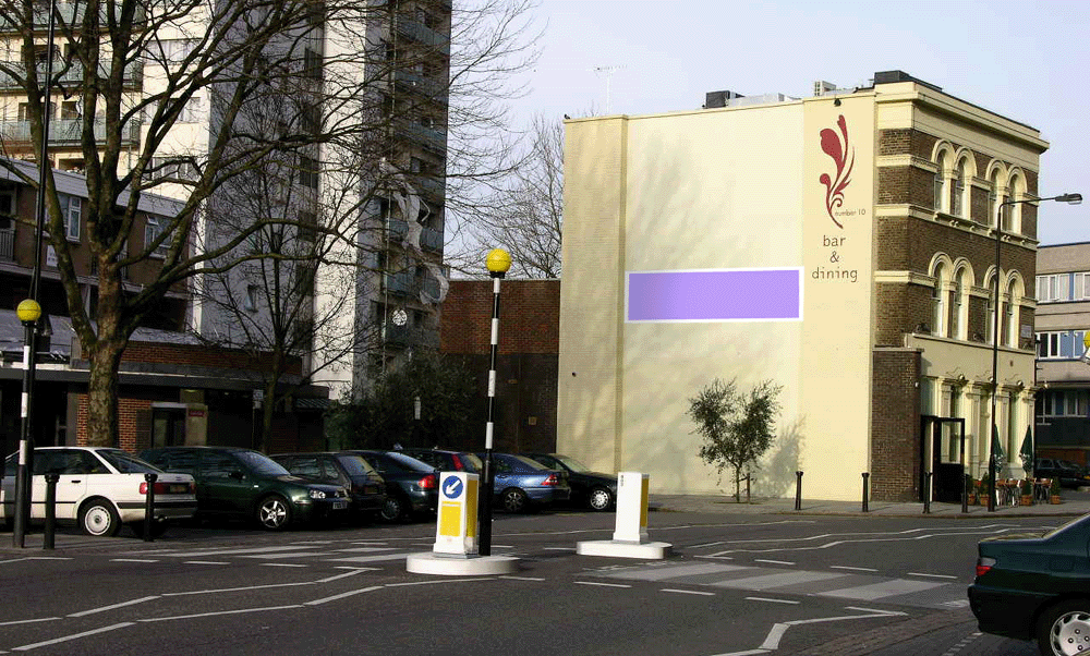Billboard dimensions: 20x5ft, height from ground: 12ft. Building lies on route of Notting Hill