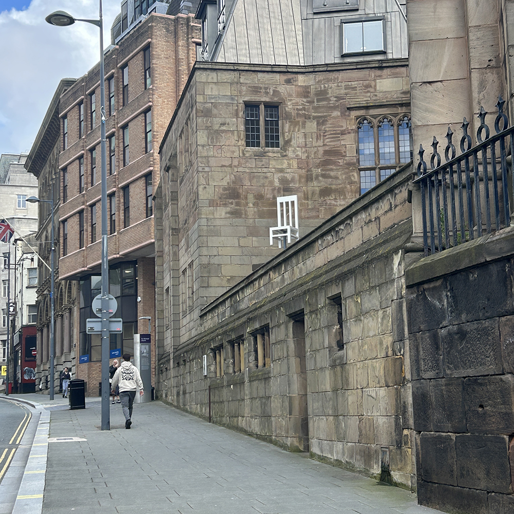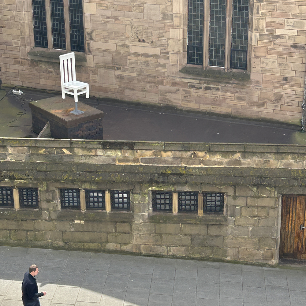 A spectral white chair, already vaguely familiar to the public, hovers above the plinth. An ambitious idea, ascension takes a component from an existing artwork in Liverpool and, by shifting its context, invites us to think about aftercare and those in our society less well off. Liverpool Biennial recently staged an event around the proposition “How do we consider and care for artists and audiences after the work is done – thinking about the work after the work.” This is the starting point for this work, which separates the decommissioned two-chair artwork RAY + JULIE (Alan Dunn & Brigitte Jurack, London Road, 1995-2023) and brings one chair to the plinth, coating it white and making it appear to float. Click here for full history of RAY + JULIE. Named after an innocuous piece of graffiti on the back wall and commissioned in 1995 by the Furniture Resource Centre to highlight the need for affordable furnishing, the original RAY + JULIE artwork existed for 27 years. Nobody ever knew who RAY + JULIE were, but in this new work they are separated, RAY at the plinth and JULIE left behind on London Road. It will be the first time in 27 years they will have been separated and will remind us of the solice and support that faith brings to the lonely and the forgotten. AD: "After we created RAY + JULIE, only intended to last for six months until the road was redeveloped, they were adopted by the people of Liverpool in such a beautiful manner. The two original chairs (chairs because one commissioner was the Furniture Resource Centre to help those in vulnerable housing) are very loosely modelled on a Charles Rennie Macintosh chair from Glasgow School of Art where the two artists first met and fell in love. The two original chairs were sinking and survived for 27 years before we requested that they were decommissioned, with a potential sale of the site. We could never find anywhere suitable to rehome RAY + JULIE but this makes sense now – give JULIE her quiet independence and allow RAY to float. Over their 27 years, the chairs became the subject of poems, short stories, photographs, a play at the Everyman Theatre, a spoken word installation in St Georges Hall and were once described by The Guardian as one of Britain's Top Ten Secret Sculptures. In creating this new work for Liverpool Parish Church, using RAY, we are also creating another work, JULIE (on her own) on London Road." Liverpool Sculpture Prize is supported by Liverpool Bid Company and Liverpool Parish Church (Our Lady and Saint Nicholas). |