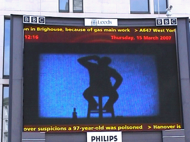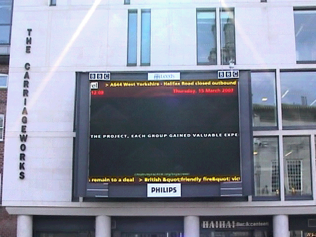 Leeds Big Screen presentations, in collaboration with Level 2 students from Contemporary Creative Practice Course, Leeds Metropolitan University, and the BBC. Project website: