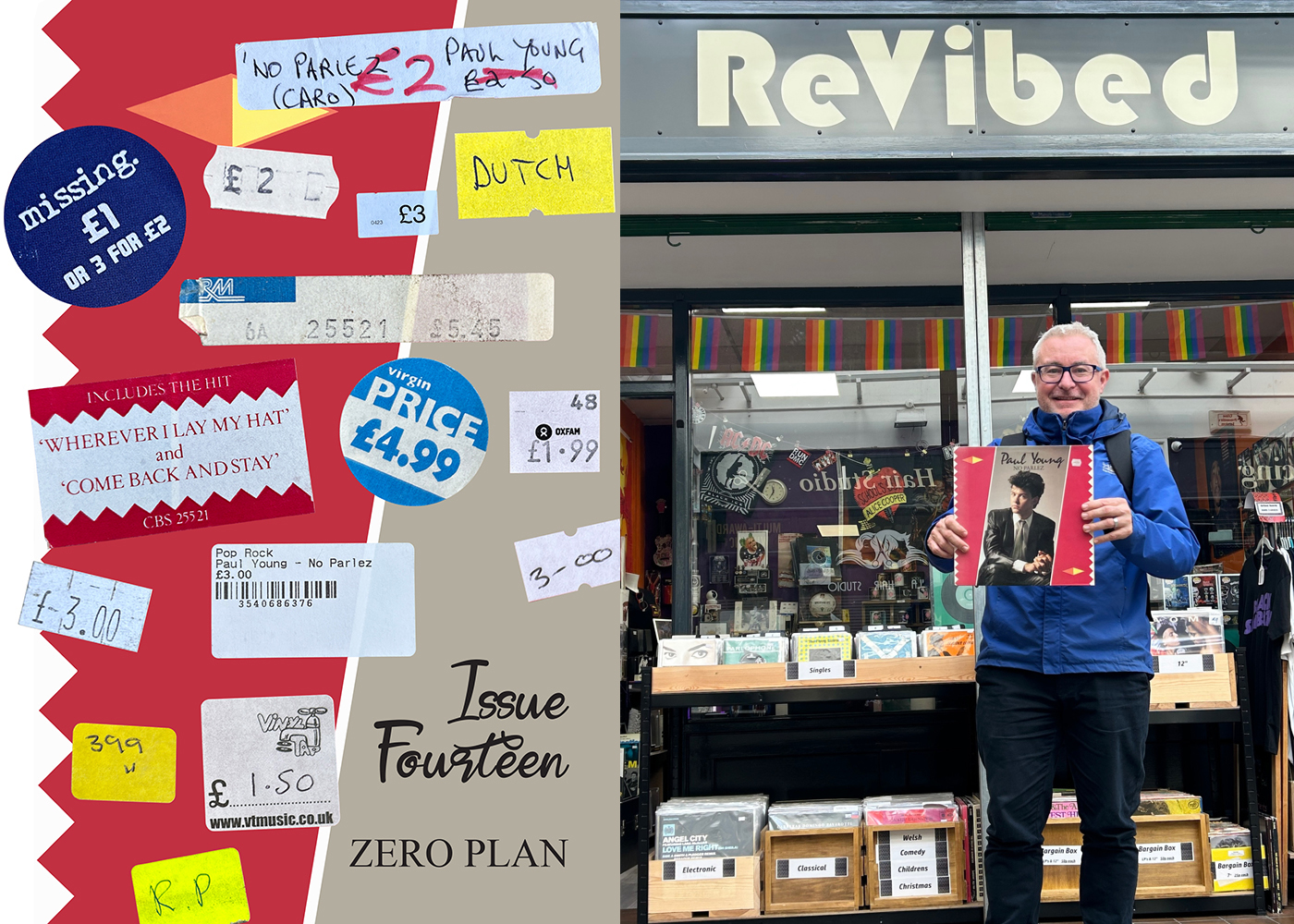Yes, this is the No Parlez project, a cover version of Rutherford Chang’s We Buy White Albums project. My current count is on the main website page. Since I started in 2014, there have been a few presentations about the project (the biggest gasp was at University of Liverpool when I ripped up a No Parlez sleeve in front of Institute of Popular music students and staff), some zine articles, the exhibition in London, a few talks, the not-covers compilation and during, Covid, the ZERO PLAN zine started (yes, it’s an anagram of NO PARLEZ). ZERO PLAN Issues 1-12 explored the LP track by track and Issue 13 came with the AN LP ZERO compilation of not-covers that invited artists, students and musicians to develop new pieces that riffed off something in one of the originals. This new Issue 14 commemorates getting near 300 copies and is a tribute to the many small independent record shops and spotters around the country who have helped me. The issue goes into a little more detail about what the project isn’t about, lists some other great (and hypothetical) cover versions and cites Susan Sontag in considering the regular traits of ‘the collector'. There are only 30 copies available but not for sale as such, so please get in touch by email about swapping one for something (maybe even a No Parlez or two?) Issue 14, 24-pages full colour, 25x17cm, again beautifully printed by our friends at NewspaperClub in Glasgow, also comes with stickers, origami zig-zag-slinky, detourned AIRMAIL label, a free fridge magnet and nod to a forthcoming feature with/in FATCANFLUB. |